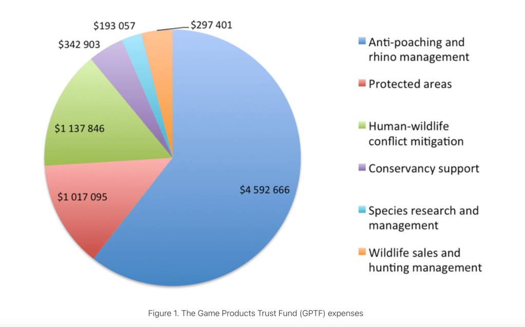 Le président du groupe rhinocéros de l’UICN déclare3 : « Lorsque l’on parle d’un vieux mâle qui a déjà joué son rôle de reproducteur, l’impact de son prélèvement est minime. L’apport financier est important car les fonds ainsi générés sont investis à 100% dans le programme de conservation. » Les sommes perçues lors des attributions de chasse sont versées au Game Products Trust Fund et dédiées uniquement à la protection du Rhinocéros noir.