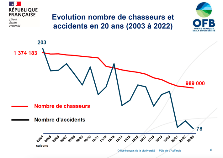 En 20 ans : – 29% de chasseurs et – 62% d’accidents.