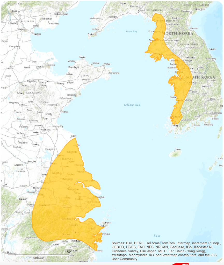 L’espèce n’est présente que dans quatre pays : Chine et Corée d’où elle est originaire et Grande-Bretagne et France où elle a été introduite. Ses habitats préférés sont les roselières, les berges des rivières, les forêts et les champs.
