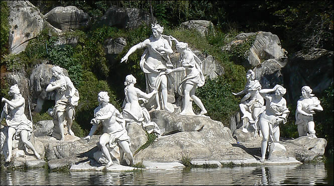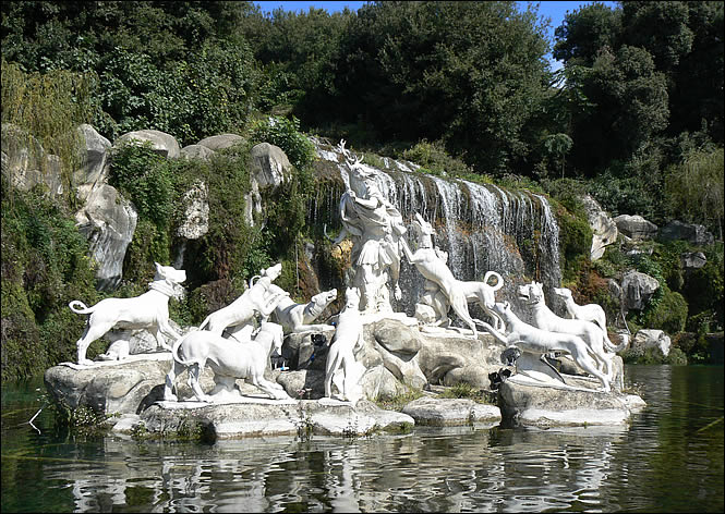 Le myhe a aussi été immortalisé par Charles III, rois de Naples lorsqu’en 1750 il décida de construire un palais devant rivaliser avec celui de Versailles. Il en confia l’exécution à l’architecte Luigi Vanvitelli qui en dessina aussi le parc. Celui-ci s’étend sur 120 hectares à l’arrière du palais et la longue allée se termine par une cascade qui se déverse dans le bassin de Diane et Actéon où deux immenses sculptures racontent la légende.