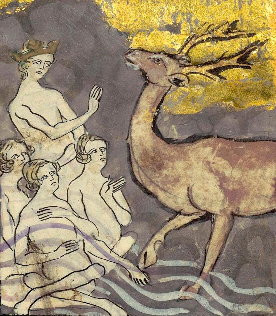 La déesse outrée de paraitre nue devant un mortel, l’aspergea de quelques gouttes d’eau, récita quelques paroles magiques et Actéon fut changé en cerf.