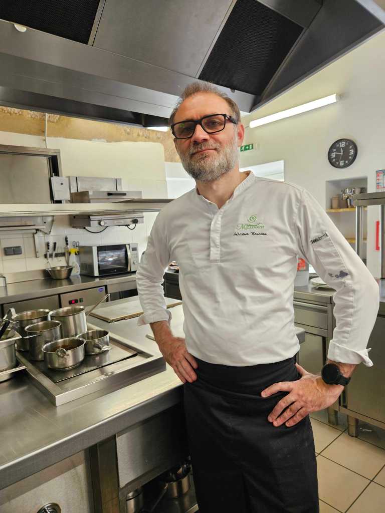 Sébastien Nouveau est bourguignon ; au cours de sa carrière, il a travaillé dans de très belles maisons et des restaurants étoilés comme le relais château de Riell ou le Clos de la violette à Aix-en-Provence. C’est d’ailleurs à Aix qu’il s’est initié à la cuisine du gibier. Il a pris en main il y a presque deux ans la cuisine du château de Massillan et a fait de son restaurant gastronomique, le M, une adresse courue des gastronomes.