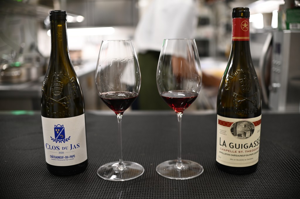 La Provence offre un large choix de grands vins qui vont parfaitement s’harmoniser avec le gibier. Le 10 octobre, le chef proposait un Lirac Clos du Jas et un Chateau-Neuf du Pape domaine de Cristia.