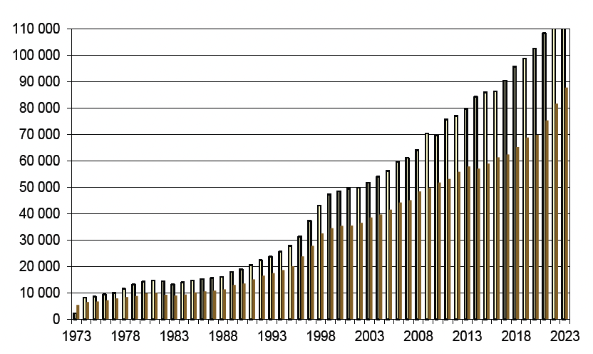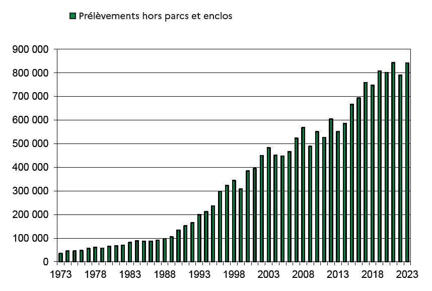 A titre de rappel, voici l’évolution des prélèvements de sangliers en France depuis 1973.