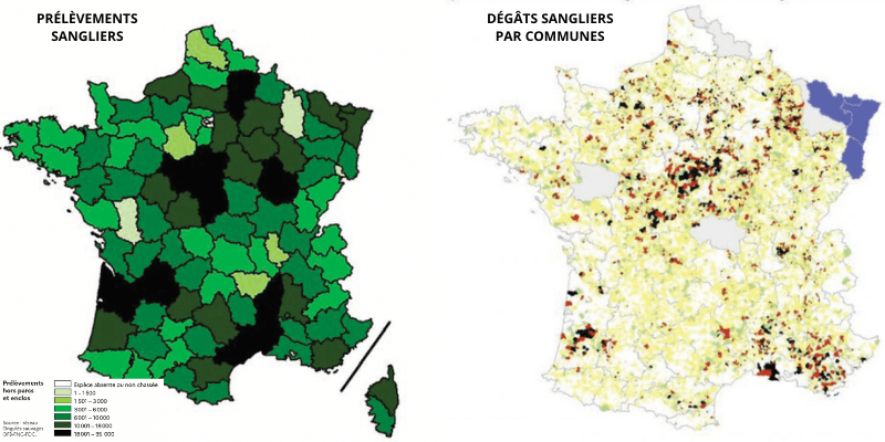 Les deux cartes ci-dessous montrent bien la corrélation entre dégâts et forts prélèvements.