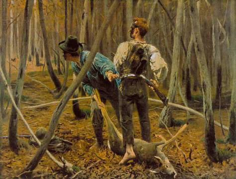 Ce personnage souvent admiré, parfois craint, parfois acccusé de tous les maux a fait le bonheur des écrivains qui l’ont souvent dépeint de manière romantique comme l’amoureux de la liberté et le faible luttant contre le fort. Les peintres se sont aussi beaucoup intéressés à lui. Le braconnier agissant le plus souvent de nuit ou aux premières lueurs de l’aube donne l’occasion aux artistes de nous livrer des toiles aux couleurs pâles, étranges et souvent saisissantes comme l’illustration de couverture de cet article1. La musique s’y est peu intéressée à ma connaissance ; seul un opéra bouffe de Jacques Offenbach est intitulé – Les braconniers.