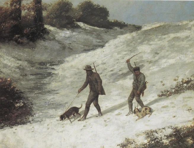 - Les braconniers dans la neige par Gustave Courbet (1819-1877)