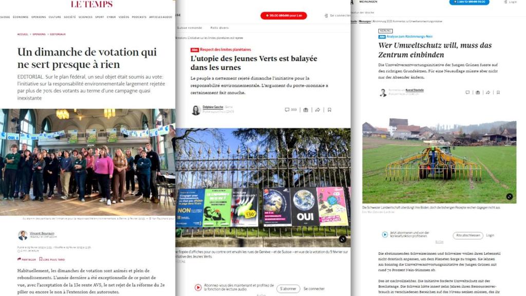 La presse suisse n’est pas tendre avec cette initiative. « L’utopie des Jeunes Verts est balayée dans les urnes » ont titré dimanche 24 Heures et la Tribune de Genève dans leur éditorial.