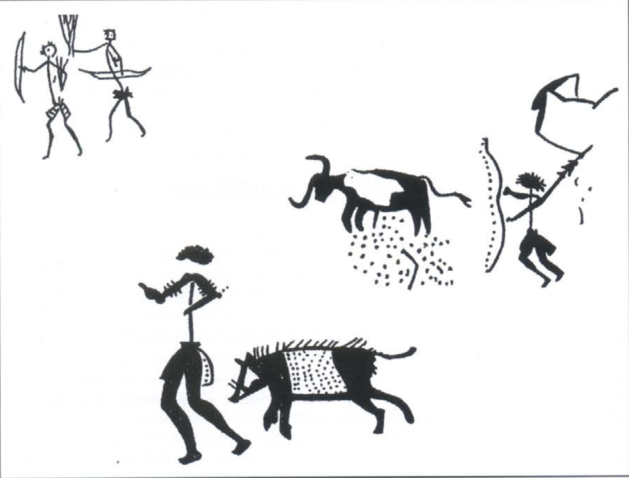 Ces gravures représentent tous les aspects de la vie primitive, chasse, collecte de nourriture, célébrations religieuses… De nombreux animaux sont peints sur les parois : paon, bison, tigre, lion, sanglier, éléphant, antilope, chien…