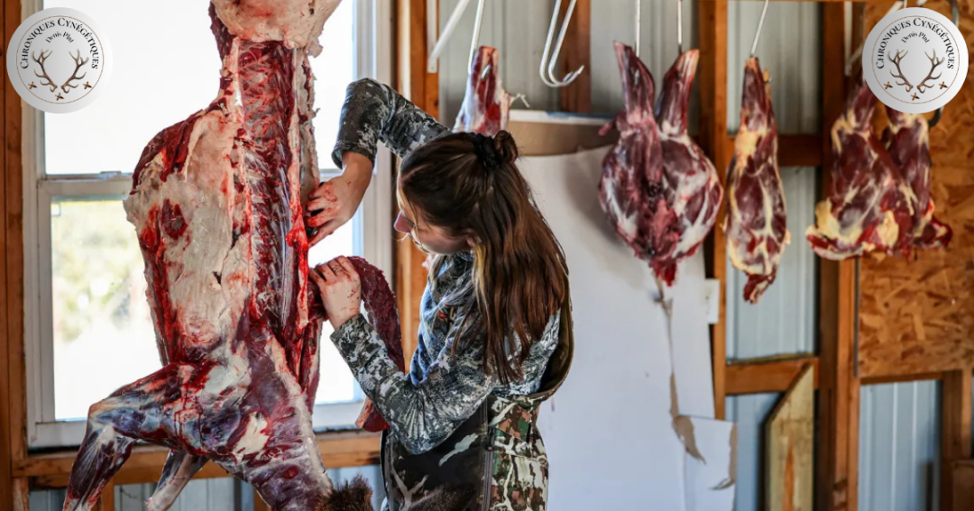 L’éviscération et le traitement doivent se faire sur un animal suspendu par les pattes arrières. Ceci permet un mouvement naturel des viscères vers le bas, un bon écoulement du sang et un moindre risque de souillure de la venaison.