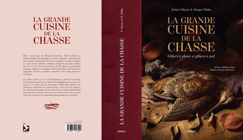 Un superbe livre d’arts vient d’être publié, il s’agit de « La grande cuisine de la chasse » de Esther Ghezzo et Morgan Malka aussi connus sous le nom des Renards Gourmets. J’écris intentionnellement arts au pluriel tant ce livre associe les références artistiques et culturelles aux plaisirs de la table. Les superbes photos y sont tout aussi importantes que les recettes. Non seulement elles subliment le plat proposé mais elles nous incitent à nous plonger dans sa genèse car, pour les auteurs, la cuisine doit être authentique et issue d’un terroir et d’une histoire.