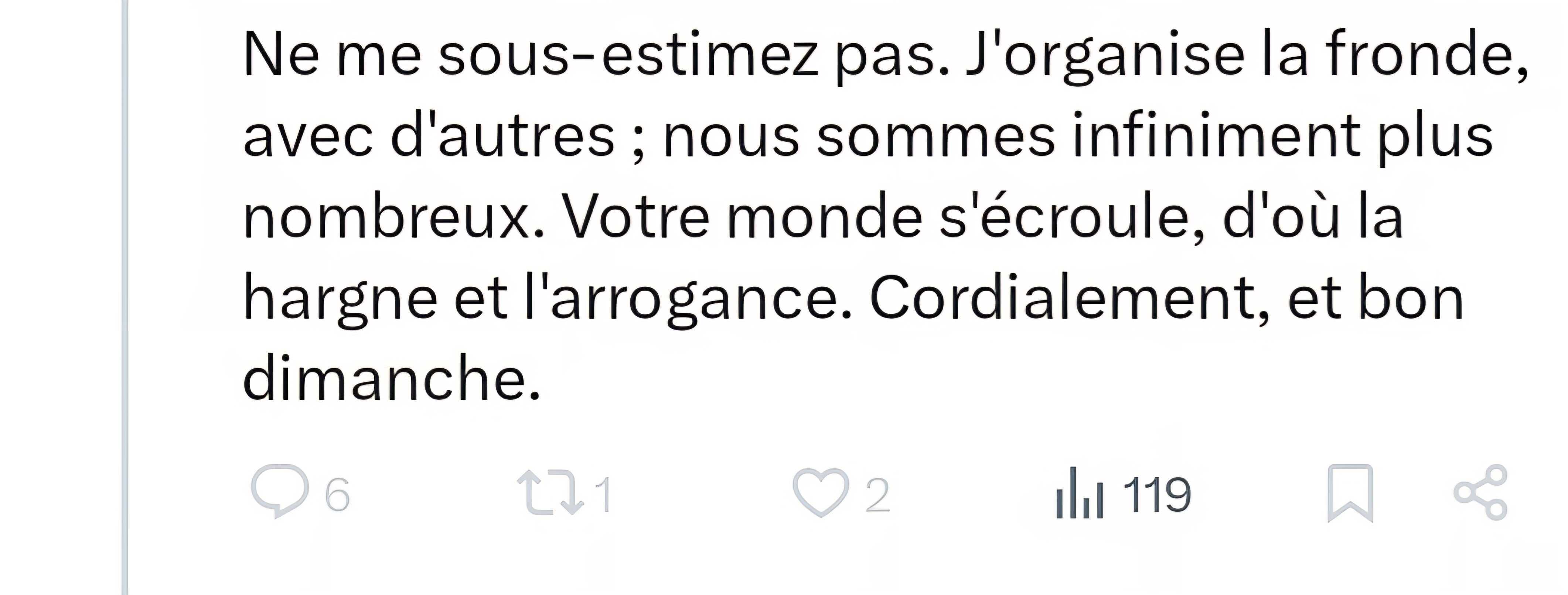 Si j’étais charitable, je ne lui montrerais pas une photo d’une vraie manifestation qui a réuni beaucoup de participants mais comme je n’ai aucune charité à l’égard de ces révolutionnaires de pacotille, voici un vrai rassemblement populaire !