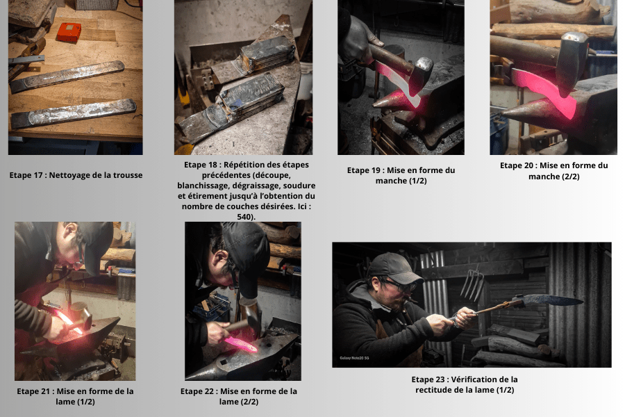 Grâce à Bastien Divorne, nous allons assister, étape, par étape à la naissance d’un couteau mélangeant acier brut et acier Damas. Une véritable oeuvre d’art !