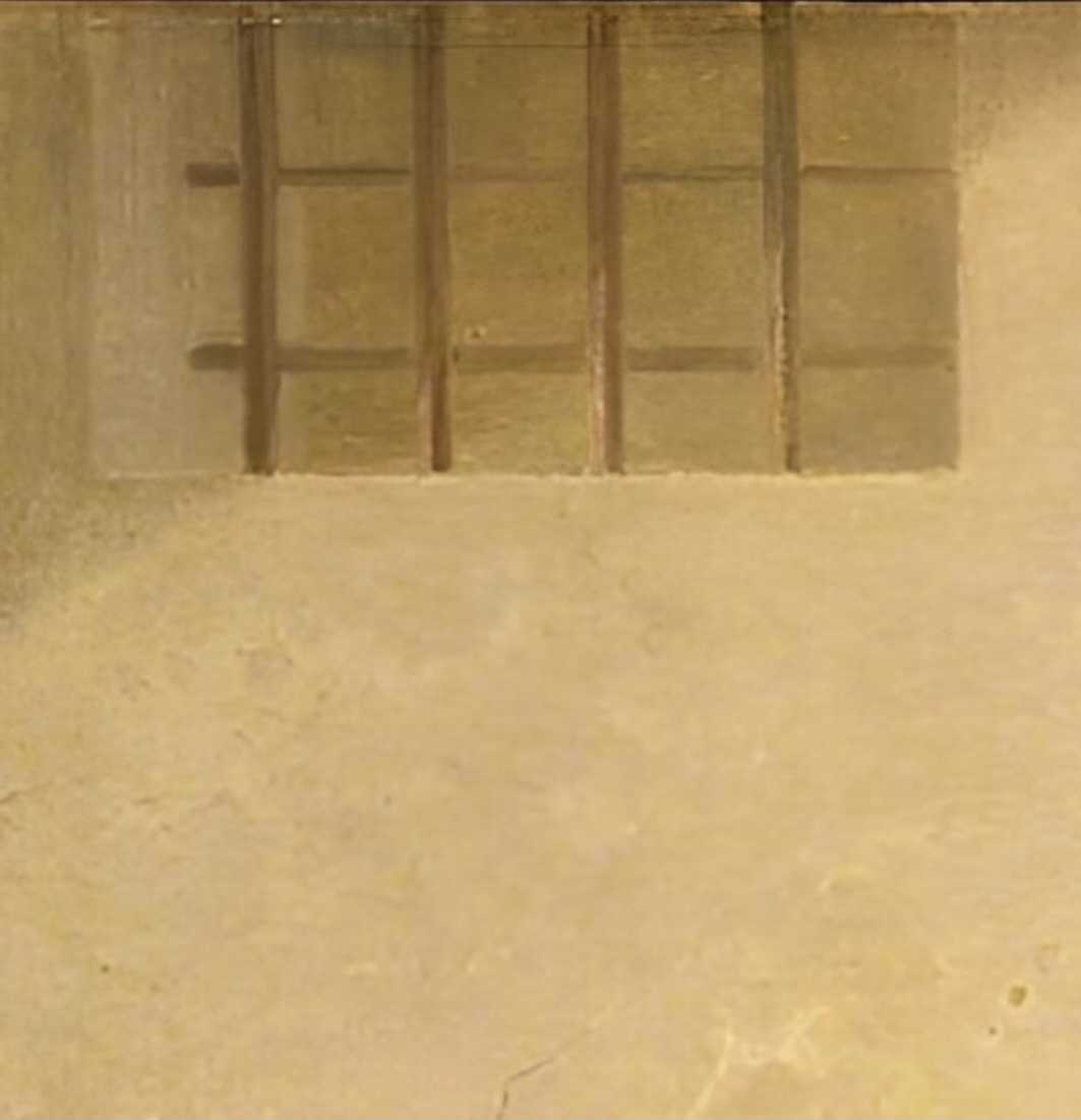 Des détails renforcent la gravité de la situation. Un graffiti à peine visible griffonné sur le mur, une potence rudimentaire avec un personnage pendu, suggère la sévérité du sort qui pourrait attendre le garçon, tandis que la fenêtre à barreaux souligne l’aspect dramatique de son emprisonnement.