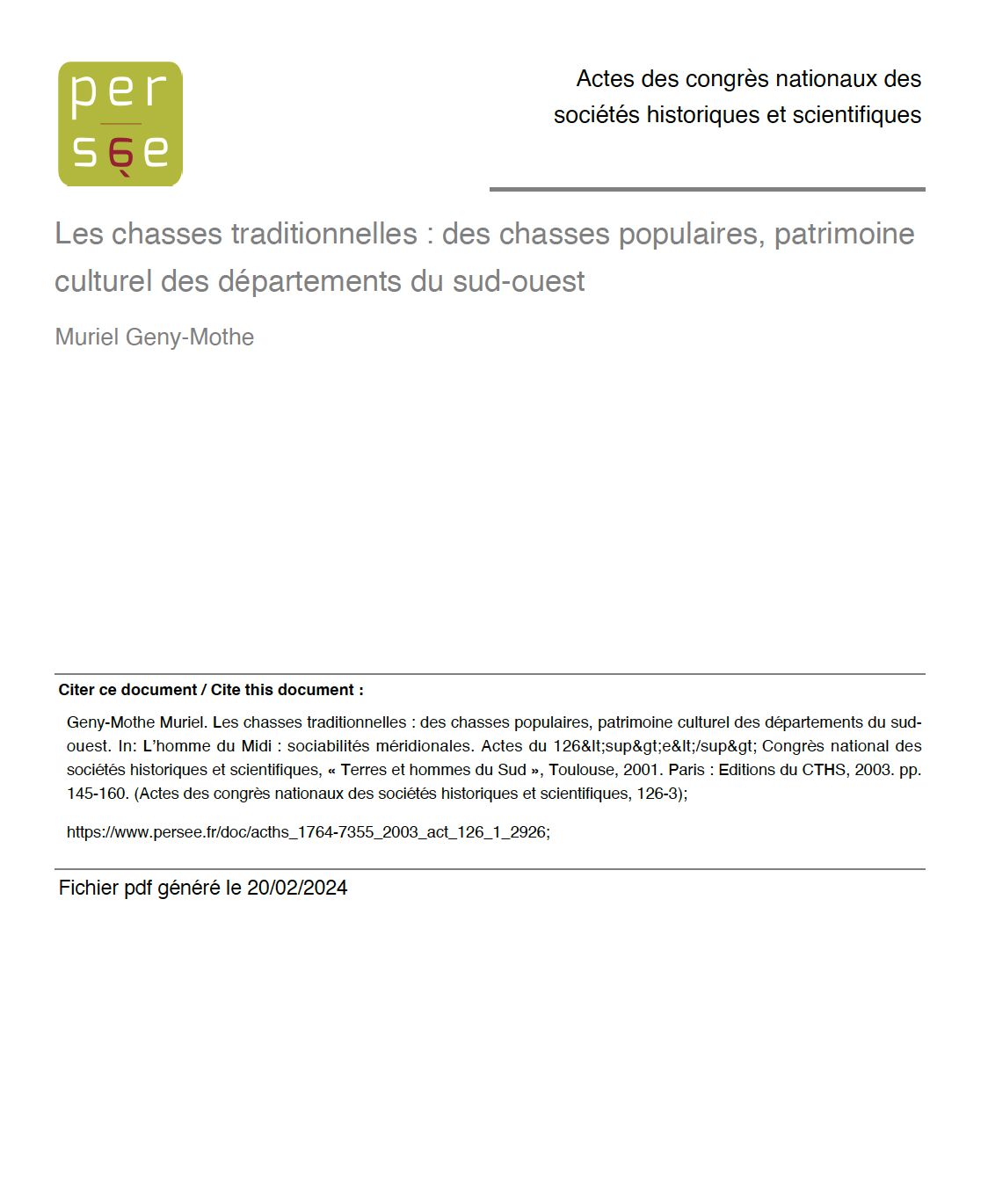 Toutes les références, sources, chasse, réglementation, bilans, études… disponibles en PDF ou en liens. Site internet de la Fédération Nationale des Chasseurs Site internet de la société de vènerie Site internet de l’Union Nationale pour l’Utilisation des Chiens de Rouge (UNUCR) Rappport EFESE ministère de la transition écologique – Les ongulés sauvages de France métropolitaine – 2023 La prédation du loup sur les ongulés sauvages. ONCFS – Faune sauvage 2015 Prélèvements ongulés sauvages. Saison 2022-2023. OFB Brochure de présentation du CIC Les militants ouvriers de la chasse – Julian Mischi La chasse préhistorique – Kurt Lindner Guide pour combattre les préjugés. FDC du Haut-Rhin. Novembre 2022 Bilan accidents et incidents de chasse. Saison 2022-2023 Les mesures du plan sécurité chasse. Ministère de la transition écologique. Janvier 2022 Document de la FACE montrant les bienfaits de la chasse Bilan accidents et incidents de chasse. Saison 2021-2022 Rapport commission sénatoriale sur la sécurisation de la chasse. Septembre 2022 Le guide pratique de l’équilibre forêt-gibier. La chasse, coeur de biodiversité – Fédération nationale des chasseurs Septembre 2020 Guide chasse durable en application de la directive oiseaux – Commission européenne Bilan accidents et incidents chasse – saison 2020-2021 Rapport Péréa – Cardoux dégâts grand gibier Les populations de sangliers en Europe – European Landowners Organization Directive oiseaux – Union européenne Inspection post mortem gibier sauvage – DGAL Guide pour comprendre les appellations des cartouches, leurs dimensions et les diverses mesures non métriques RÈGLEMENT (UE) 2021/57 DE LA COMMISSION du 25 janvier 2021 qui concerne le plomb dans la grenaille de chasse Étude BIPE sur les apports de la chasse à la nature et à la société La chasse sauvage des celtes – Gérard Poitrenaud. Étude sur la mythologie celte La chasse à courre. Ses rites et ses enjeux sociaux - Michel Pinçon & Monique Pinçon-Charlot Plan d’actions 2017-2022 pour la conservation du tétras-lyre et de ses habitats – Observatoire des galliformes de montagne Tétras-lyre. Conservation et gestion durable – FDC74 et ANCM (mai 2017) Biodiversité : faut-il vraiment paniquer ? Une étude d’Action Écologie. European bird declines: Do we need to rethink approaches tothe management of abundant generalist predators? Arrêté du 28 décembre 2023 relatif à divers procédés de chasse, de destruction des animaux nuisibles et à la reprise du gibier vivant dans un but de repeuplement Conservat Sci and Prac – 2024 – Challender – Evaluating key evidence and formulating regulatory alternatives regarding the Les chasses traditionnelles : des chasses populaires, patrimoine culturel des départements du Sud-Ouest. Prélèvements ongulés sauvages. Saison 2023-2024. OFB ANCGG, histoire et réalisations. Partager : Cliquer pour partager sur X(ouvre dans une nouvelle fenêtre) X Cliquez pour partager sur Facebook(ouvre dans une nouvelle fenêtre) Facebook Cliquez pour partager sur LinkedIn(ouvre dans une nouvelle fenêtre) LinkedIn Cliquer pour envoyer un lien par e-mail à un ami(ouvre dans une nouvelle fenêtre) E-mail Cliquer pour imprimer(ouvre dans une nouvelle fenêtre) Imprimer Cliquez pour partager sur Telegram(ouvre dans une nouvelle fenêtre) Telegram Cliquez pour partager sur WhatsApp(ouvre dans une nouvelle fenêtre) WhatsApp J’aime chargement…